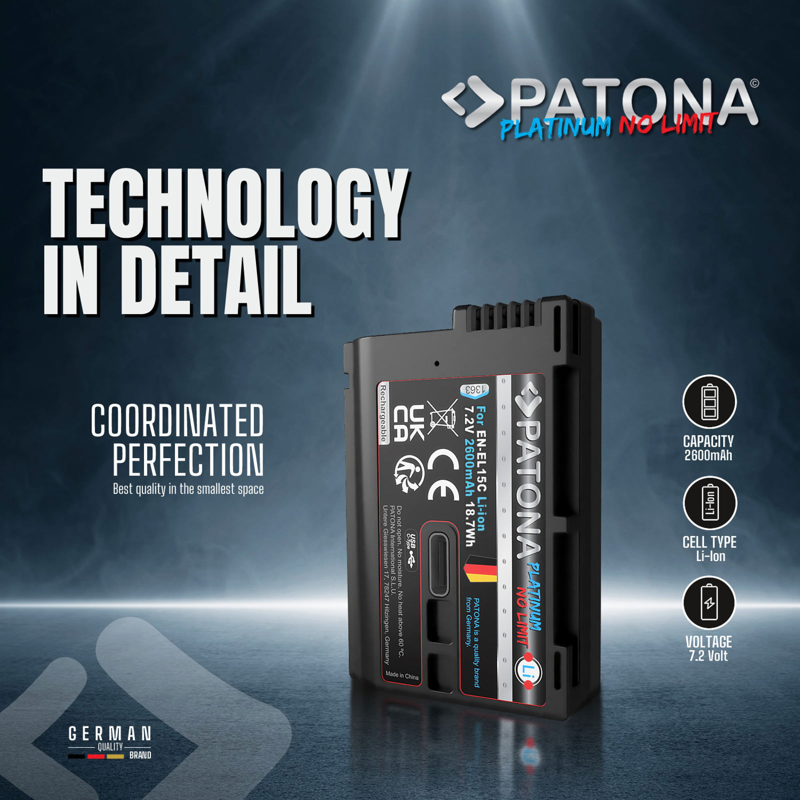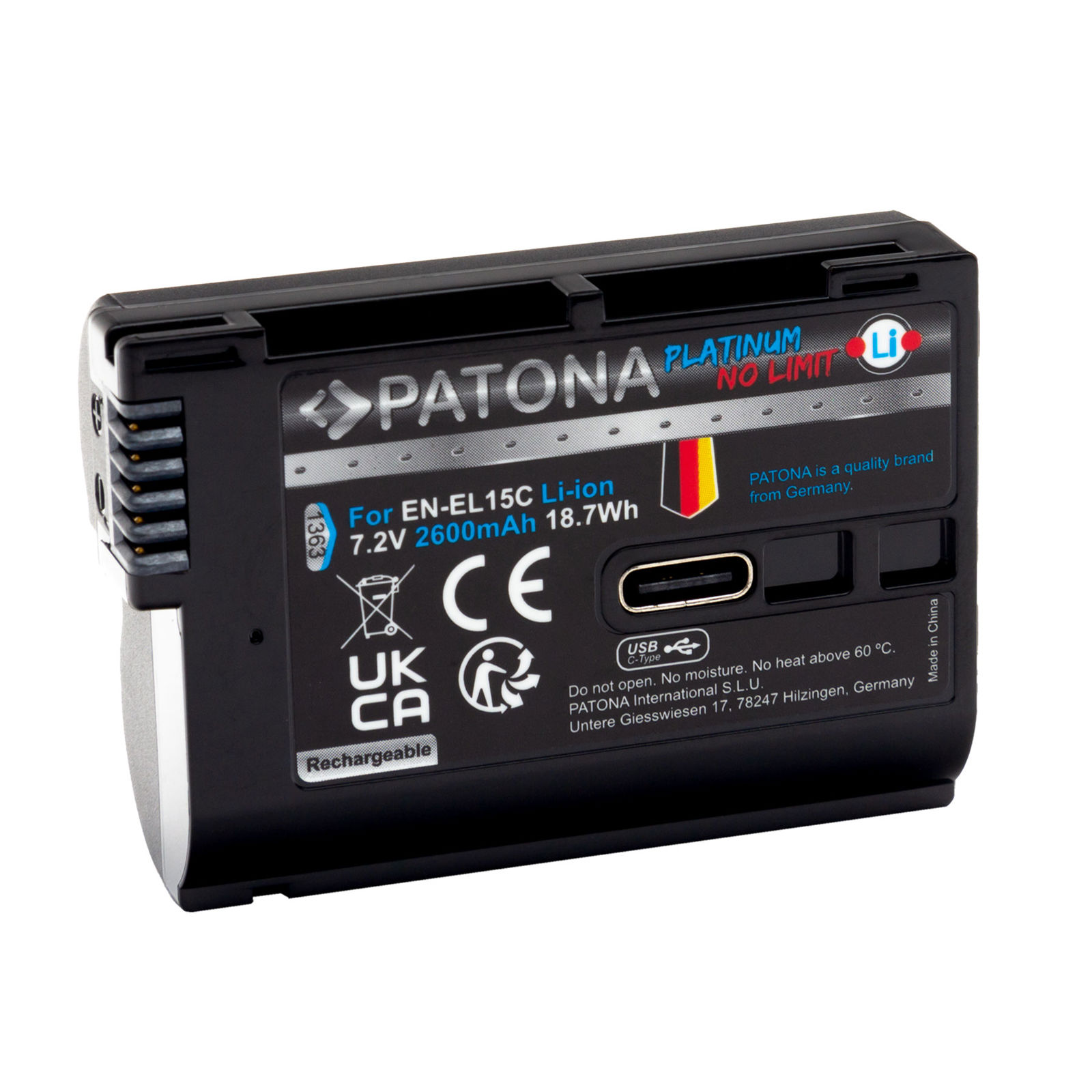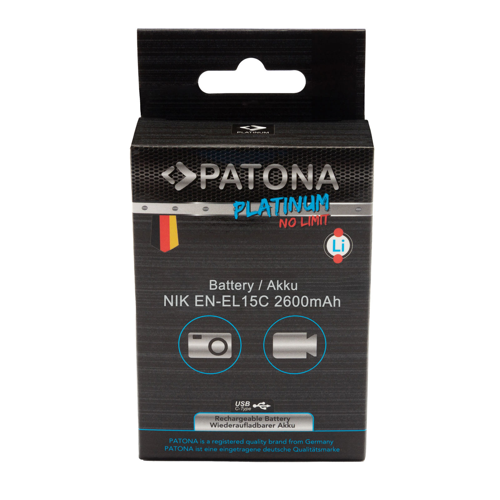 Patona EN-EL15C USB-C 2600mAh Platinum baterija za Nikon Z8, Z7 II, Z6 III, Z6 II, Z5 II, Z5, ZF, D850, D780, D750, D500, D7500, D810, D610, D7200, D810A Lithium-Ion Battery Pack