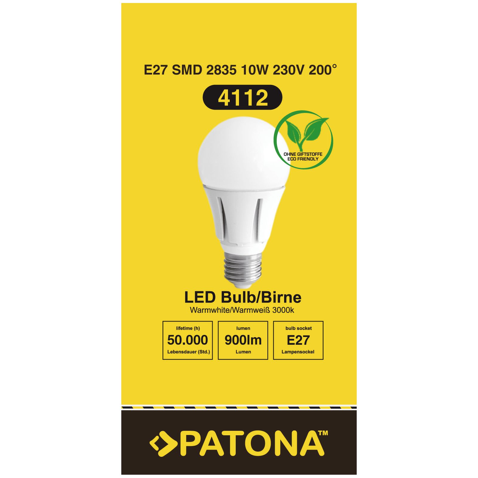Patona LED E27 SMD 2835 10W 60x120mm 900lm 3000K 230V/50-60Hz A+ warmwhite milkcover ceramic body