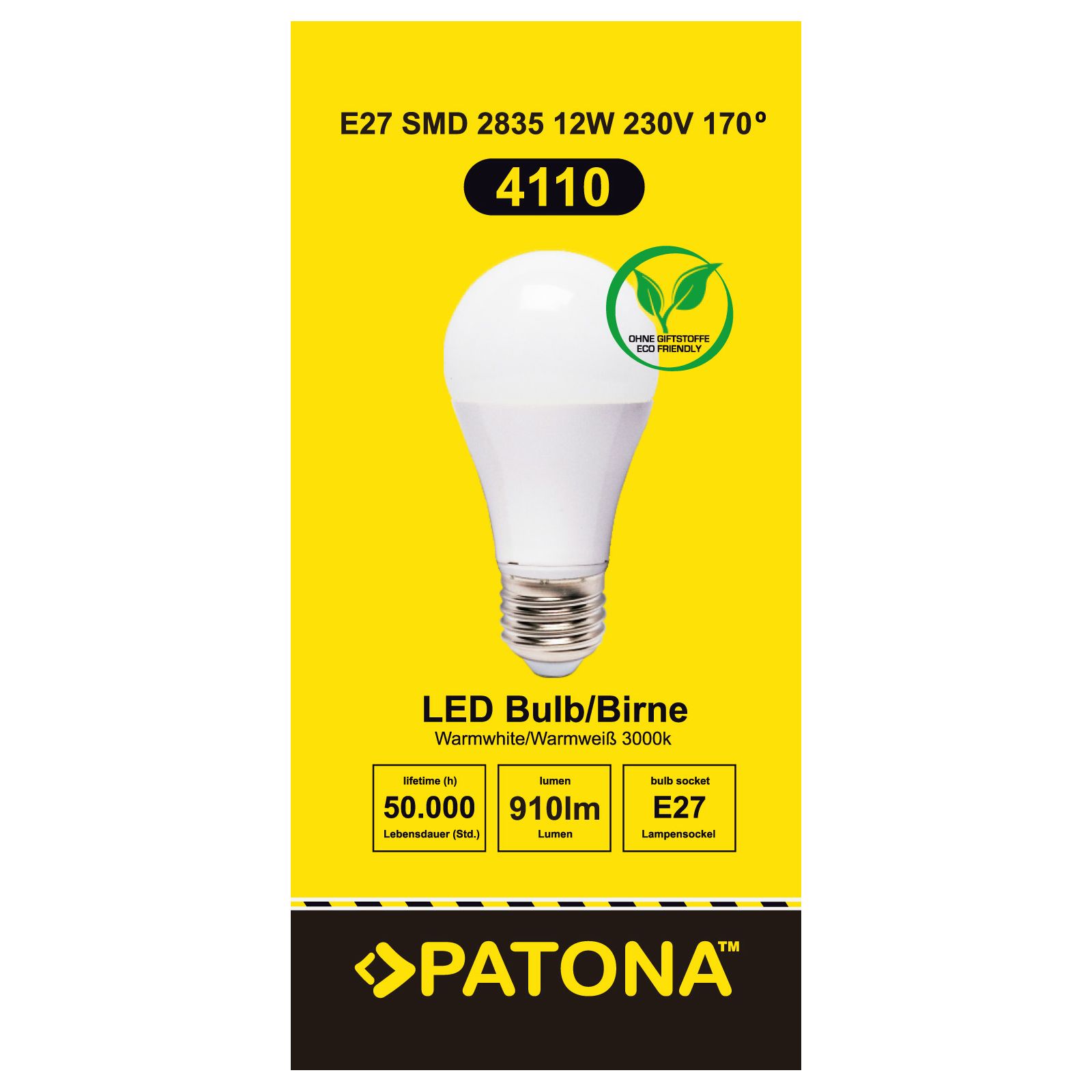Patona LED E27 SMD 2835 12W 60x120mm 910lm 3000K 230V/50-60Hz A+ warmwhite milkcover ceramic body